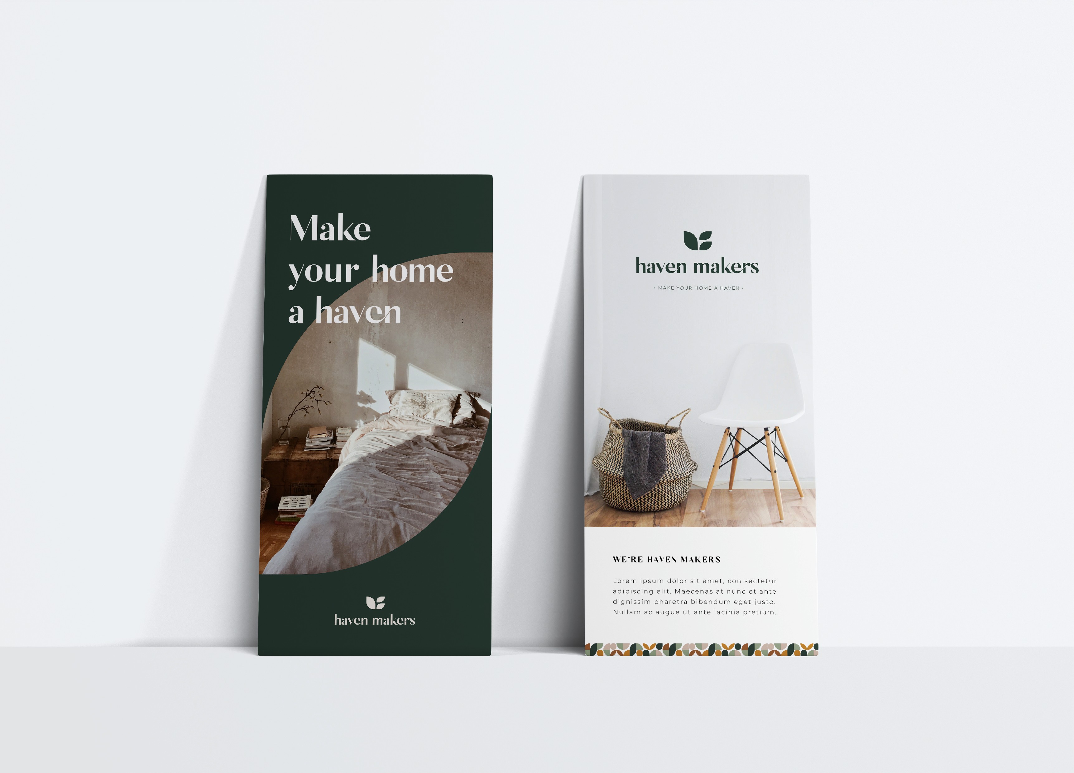 Haven Makers, a New Zealand-based small business specialising in home organising, decluttering, eco-cleaning, Airbnb management, and home staging, draws inspiration from the saying "Make hay while the sun is shining." The logo I crafted embodies the brand's values with a clean and simple design. The brand embraces an earthy and natural colour palette, evident in photography that captures natural light and textures. The tagline, "Make your home a haven," encapsulates the brand's mission. My role involved shaping the brand identity, creating comprehensive guidelines, designing social media assets, and crafting UI elements. The outcome: a harmonious and inviting visual presence, perfectly aligned with Haven Makers' ethos.