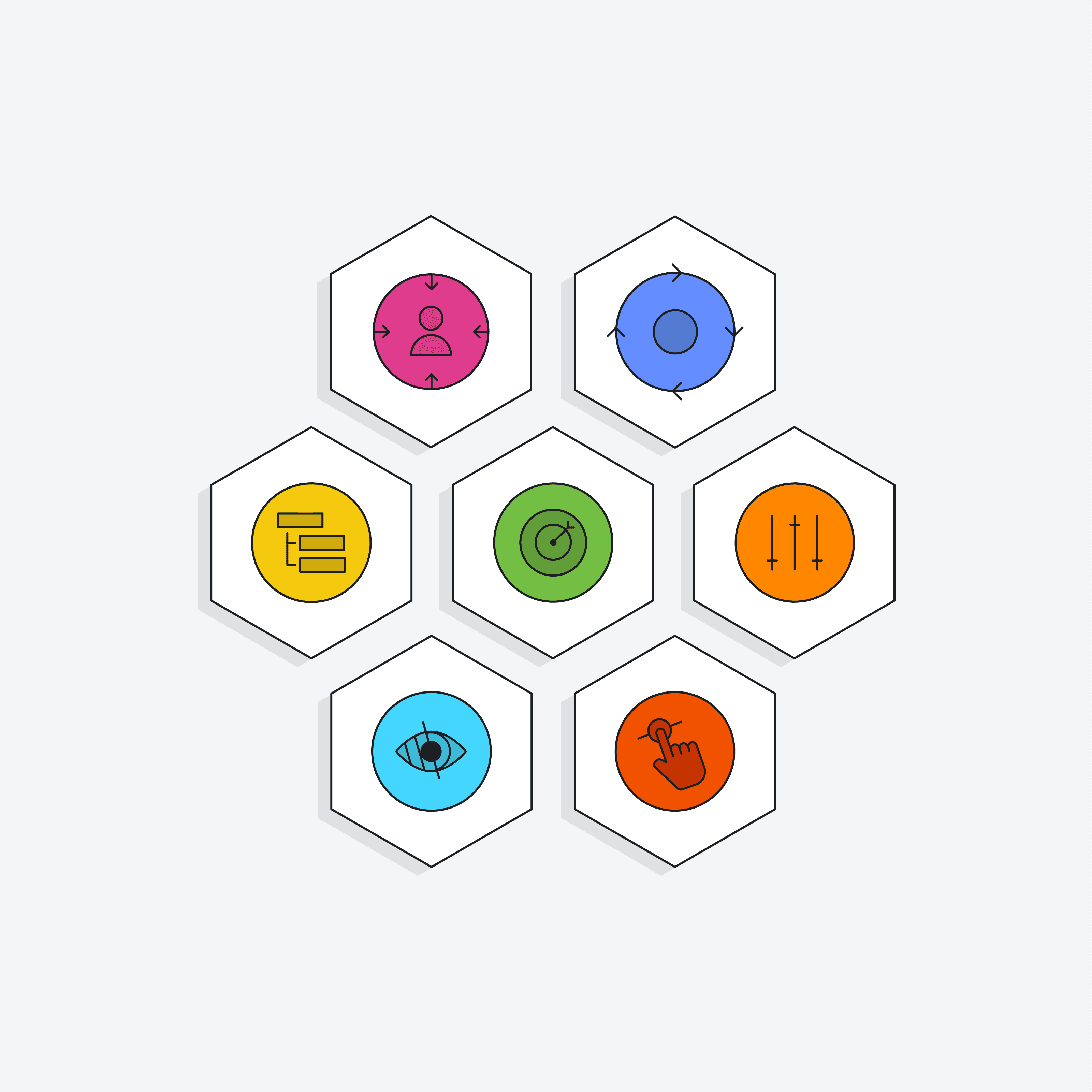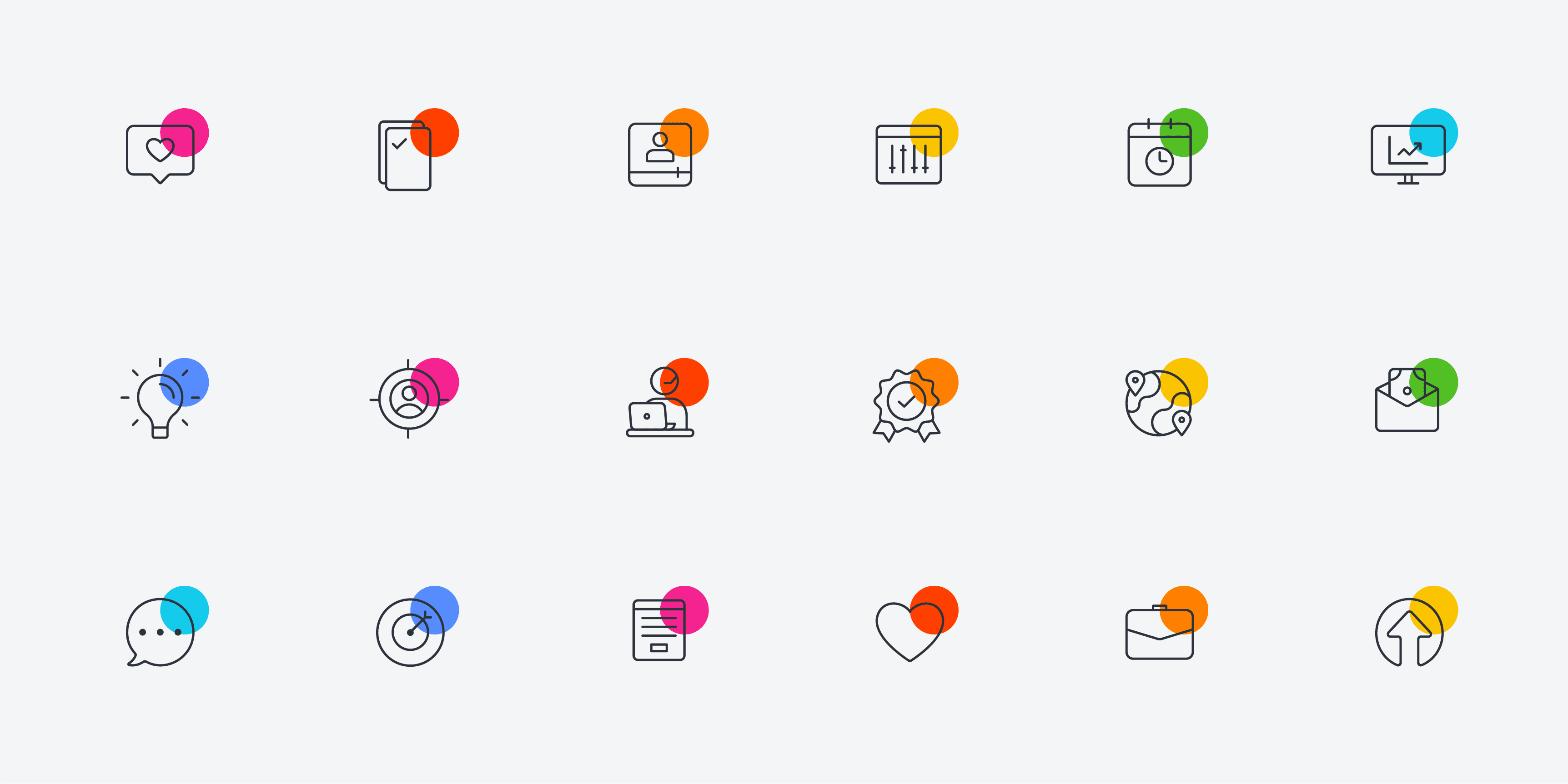 During my time at the UX Design Institute, I led a crucial project to establish a unified illustration and icon style for the brand. The goal was to create a cohesive visual identity across all platforms. The resulting icons feature clean lines and the brand's distinct colour circle, while the illustrations adopt a minimalist approach with subtle touches of colour. These designs have since become integral to UXDI, appearing in course materials, the website, social media, and marketing campaigns, ensuring a consistent brand presence.